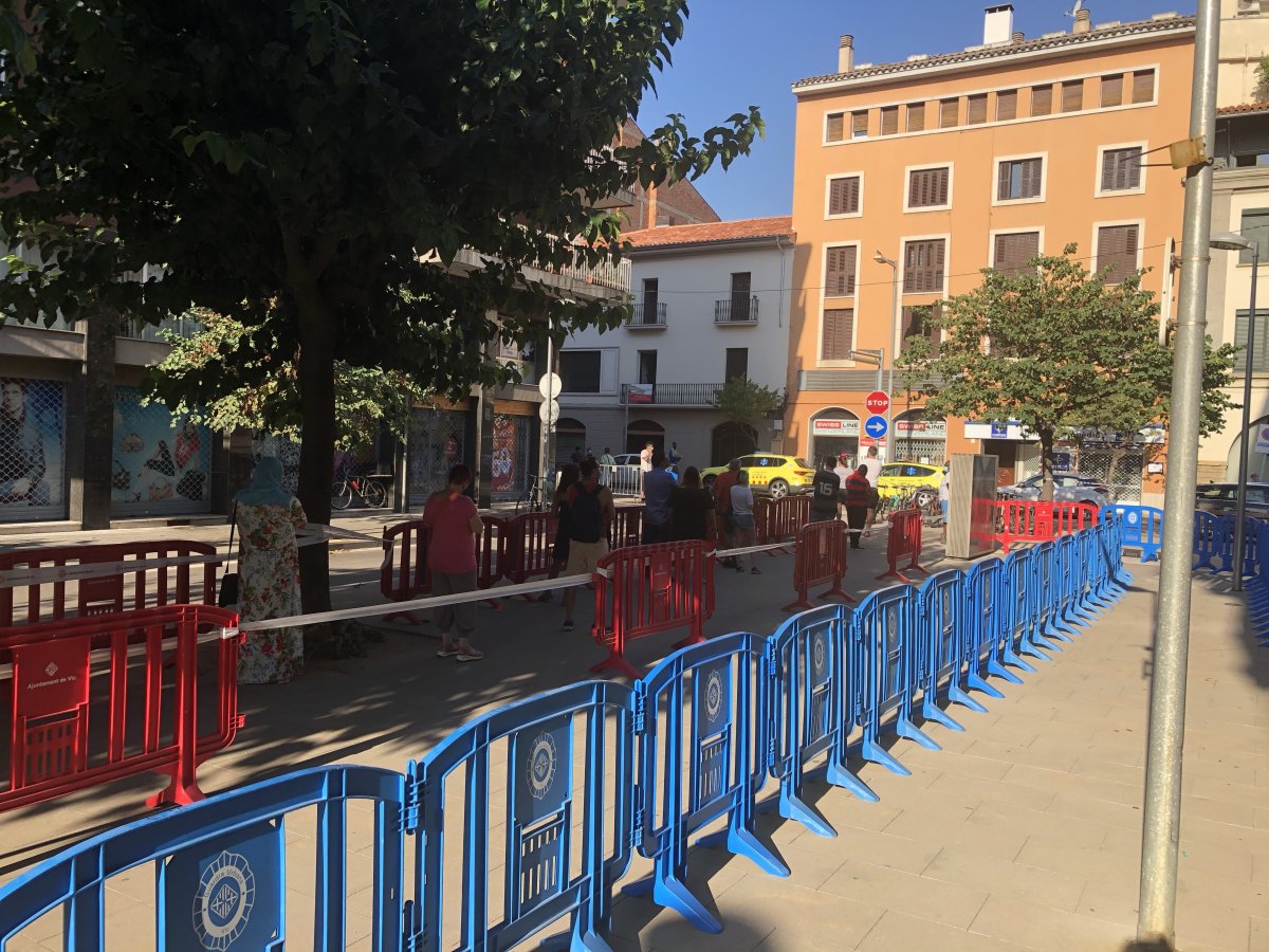 Per evitar concentracions de gent s’han habilitat tanques al passeig de la Generalitat per poder mantenir la distància de seguretat amb els vianants i també a la plaça Francesc Macià.