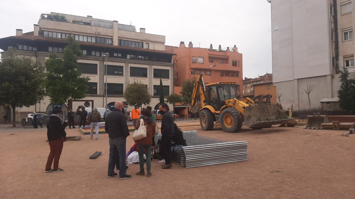 L’inici de les obres ha provocat la ràpida reacció de membres de Remei Reviu, que han convocat els veïns per impedir que s’emportin els elements de joc.