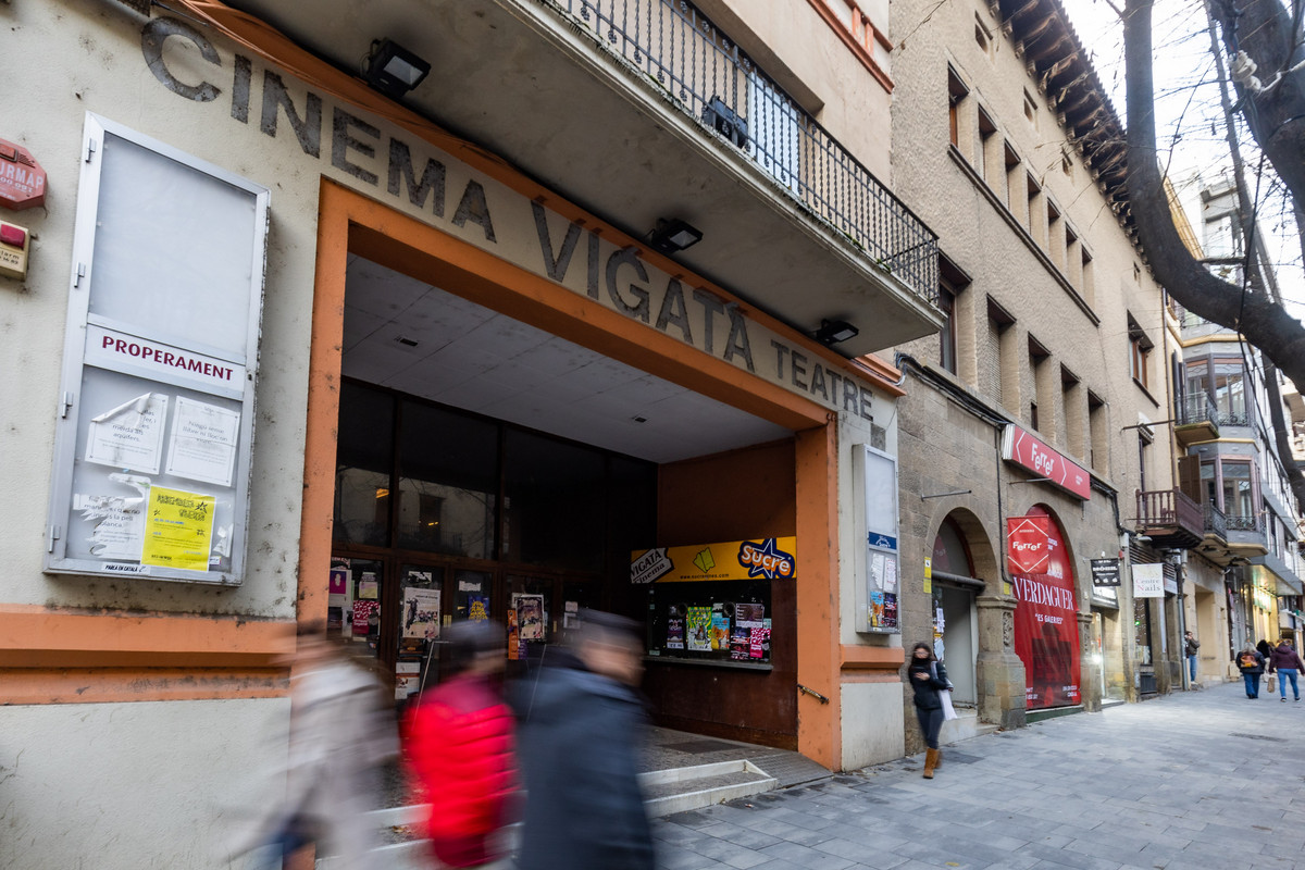 La imatge de deixadesa i decrepitud impacta en un vial tan cèntric com el carrer Verdaguer. Això i els cartells plantats als vidres de l’antic cinema Vigatà denoten la decadència del que havia estat una de les sales més importants de la comarca.