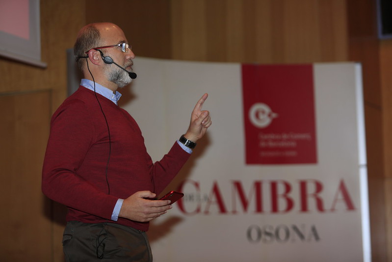 El president de la Cambra de Comerç de Barcelona, Joan Canadell, va presidir, ahir, el Dia de la Cambra a Osona. Representants del teixit empresarial de la comarca van omplir l’auditori del l’Edifici del Sucre en un acte que va servir per reconeixer empreses del territori que destaquen en àmbits concrets. Canadell, que presideix la cambra després que la candidatura independentista Eines de País s’imposés a les eleccions, hi va presentar el projecte ‘Catalunya 2030/2040, el pla estratègic de l’ens per construir un nou model econòmic de país a vint anys vista. Era el dia més emblemàtic de la Cambra i el teixit empresarial osonenc va respondre un any més. Per l’ocasió, Joan Canadell, president de l’entitat, va acompanyar-se de Pere Antentes, president de la delegació comarcal de la Carmbra de Comerç de Barcelona. Durant la seva intervenció, Canadell va presentar el projecte ‘Catalunya 2030/2040’, un redactat basat en 15 eixos que l’economia catalana ha de tenir en compte per tal de crear de Catalunya un actor econòmic destacat a nivell europeu. El president de la Cambra va agrair a l’empresariat osonenc la seva contribució al creixement del teixit econòmic de la comarca, sense passar per alt la delicada situació que travessen els treballadors de l’antiga General Cable.