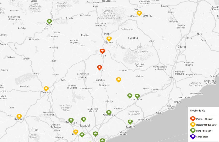 L’ozó troposfèric està sent massa protagonista a la Plana de Vic durant les últimes setmanes. Aquesta setmana però la situació s’ha complicat més ja que aquest dilluns es va activar un avís preventiu i aquest dimarts s’ha superat el llindar d’informació a Tona, Vic i Manlleu. Aquest llindar es situa en 180 µg/m3. És el cas de Tona on a les 4 de la tarda l’estació de la zona esportiva alertava que s’havien superat els 199 µg/m3 o de Vic on a les 5 de la tarda el valor ha superat els 190 µg/m3 a l’estació situada a l’Estadi.