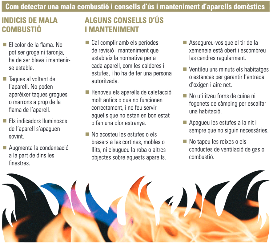 Les conseqüències poden anar des d’un petit ensurt fins a la mort. A més dels incendis que es poden desencadenar, cada any a Catalunya hi ha intoxicacions i morts per inhalació de monòxid de carboni (CO). Aquests incidents van estretament lligats a un mal ús de l’aparell per escalfar-se, que no funcioni correctament o que la instal·lació estigui mal feta.