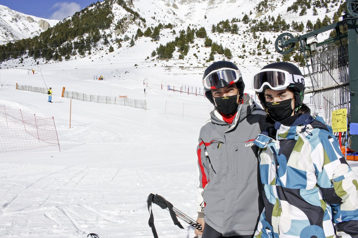 Pel que fa als perfils de persones, joves, estudiants, famílies que tenien algun dia de vacances, gent que pot combinar el teletreball i d’altres que treballaven a la tarda i aprofitaven per pujar a les pistes al matí. És el cas de Carla López i Helena Mercader, totes dues de Sant Vicenç de Torelló (foto 1). “Som novelles”, asseguraven. Mercader, que estava de vacances, només havia esquiat quan havien fet una sortida “amb l’institut”, i aquest dimarts a primera hora havia fet una classe. López havia esquiat algun cop més i era una mica més experta. Hi havien arribat a les 9 quan tot just obrien i a la 1 havien de baixar perquè López arribés a la feina. Totes dues apuntaven que el fet de comprar el forfet per internet els havia anat molt bé.