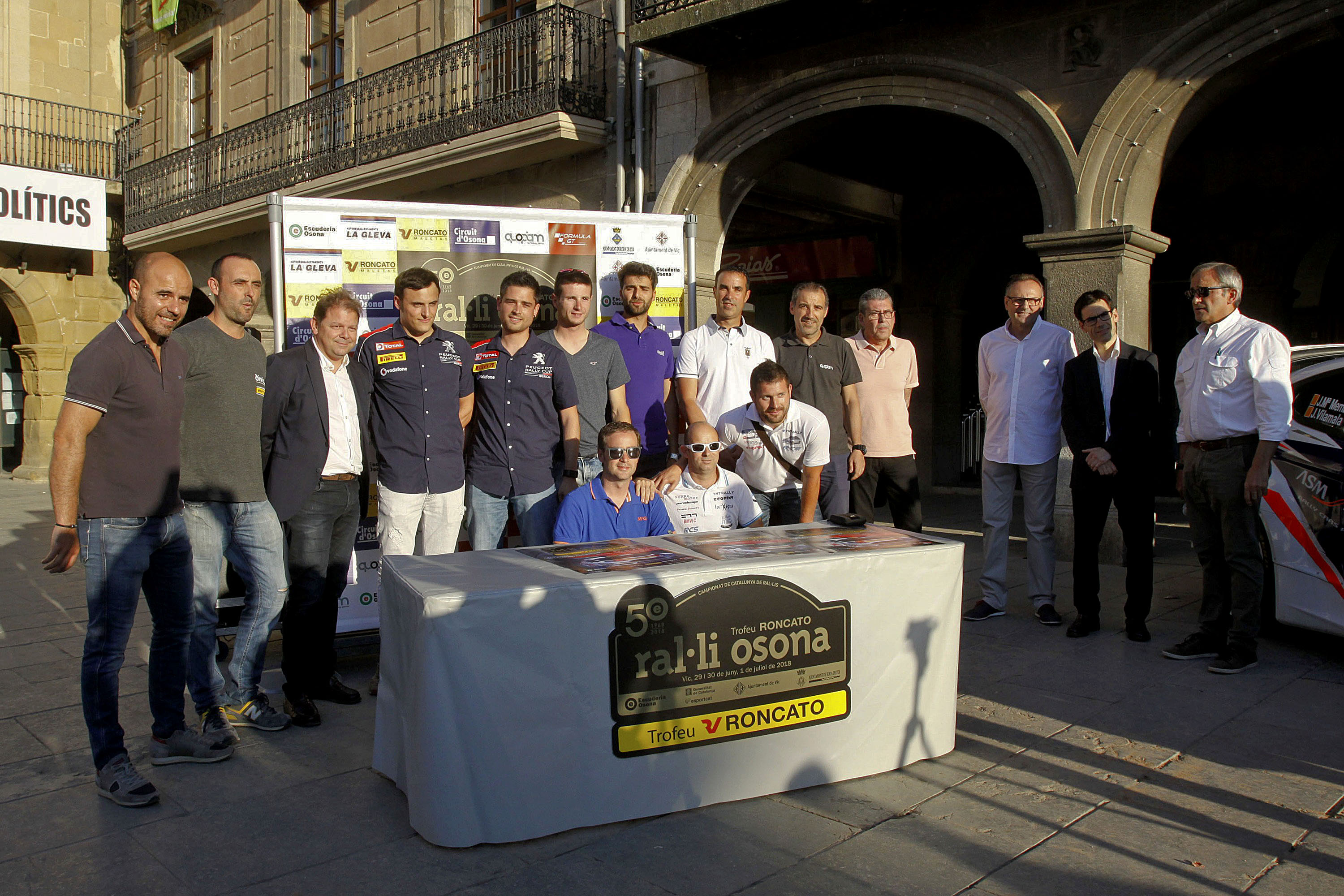 Els cotxes de Josep Maria Membrado, que ha guanyat fins a deu vegades el Ral·li Osona, i Albert Orriols, que amb un World Rallye Car parteix com a principal favorit, s’exhibien aquest dimarts a la Plaça Major de Vic en la presentació del 50è Ral·li Osona. La prova, en la que hi ha 91 equips inscrits, sortirà de la mateixa plaça el divendres 29 de juny a les 8 del vespre i els pilots es dirigiran cap al parc d’assistència que, com a novetat, estarà ubicat a la zona de la carpa de Roda de Ter, un punt estratègic pel bon desenvolupament de la prova, en paraules de Joan Panadès, president de l’Escuderia Osona que, com el ral·li, fa 50 anys. Dels participants, 51 competeixen al Campionat de Catalunya, 26 al de vehicles clàssics i 16 en la categoria de Promoció.
