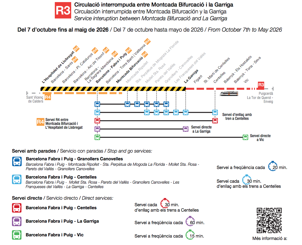 Els serveis alternatius arriben i surten de l’estació d’autobusos de Fabra i Puig (Barcelona), on els passatgers poden enllaçar amb la línia R4 de Rodalies i el metro L1.