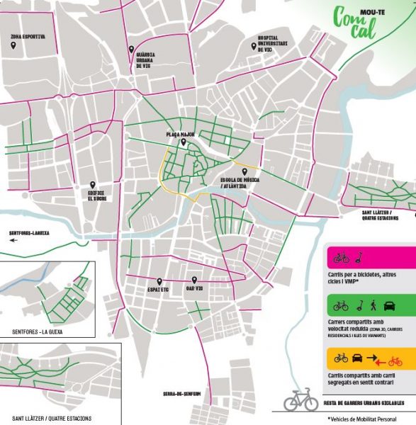 Aquesta setmana han aparegut bicicletes penjades en diverses rotondes de Vic. Forma part d’una campanya de promoció de l’ús de la bicicleta en els desplaçaments quotidians. La campanya ha estat dissenyada conjuntament pel grup promotor de la bicicleta, que forma part de la taula de mobilitat de Vic. La regidora de Convivència i Seguretat en funcions, Susagna Roura, assegura que un dels objectius és “incrementar els desplaçaments en bicicleta per la ciutat del 2 al 5% d’aquí al 2025.