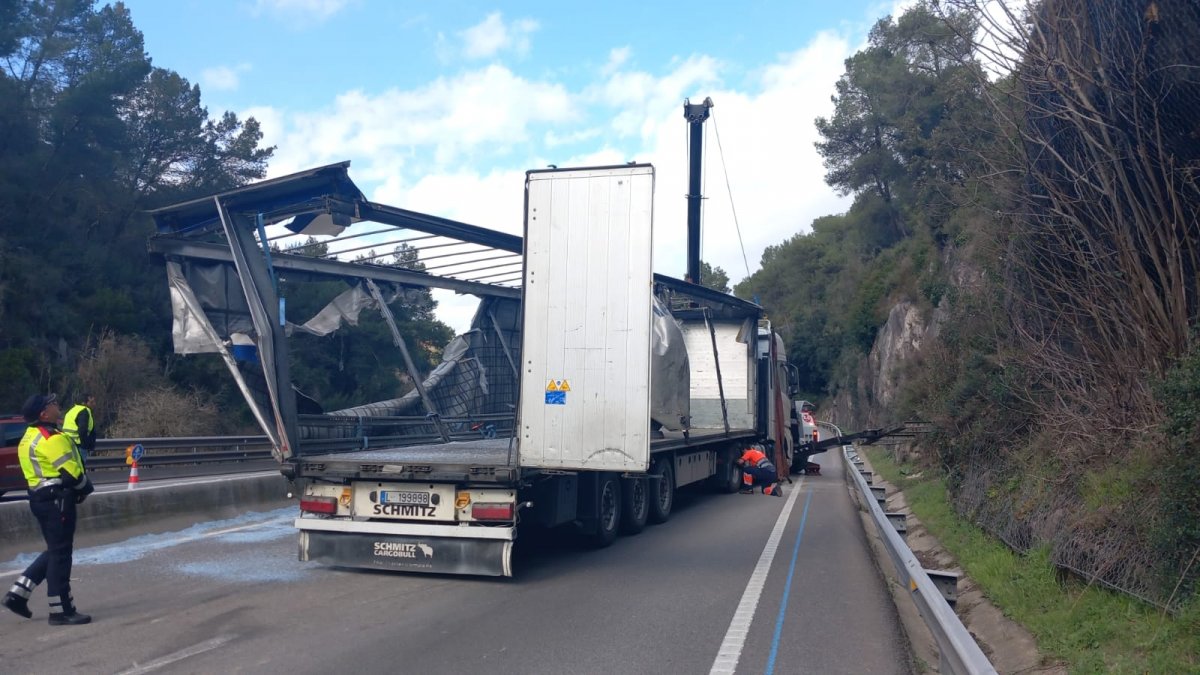 Aquest matí a primera hora, s’han intensificat els treballs per retirar-lo, una operació complexa que ha requerit buidar la càrrega abans de poder treure’l de la calçada. Durant les tasques hi ha hagut talls puntuals de carrils i, en moments concrets, circulació totalment interrompuda.