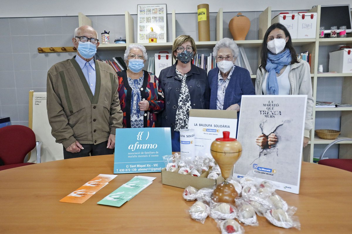 L’Associació de Familiars de Malalts Mentals d’Osona (AFMMO) ha creat una campanya per recaptar diners per a La Marató de TV3 –enguany dedicada a les malalties mentals– amb la venda de baldufes solidàries. L’AFMMO donarà íntegrament els beneficis econòmics que s’aconsegueixin amb la venda de baldufes a la investigació i a iniciatives que permetin oferir suport als afectats i a les seves famílies. Les baldufes es podran comprar en la majoria de comerços d’Osona i també a través del correu electrònic de l’associació o el telèfon.