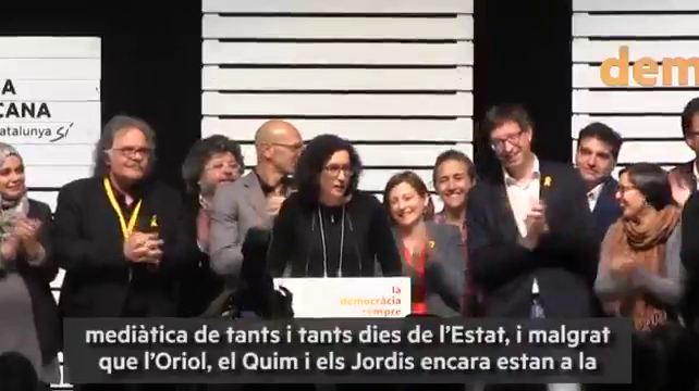 “Els independentistes i republicans hem tornat a guanyar”, exclamava Rovira. “Malgrat l’ofensiva policial, l’ofensiva judicial, malgrat tota l’ofensiva mediatica de tants dies de l’estat… Malgrat que l’Oriol, el Quim i els Jordis son a la presó, malgrat tenir mig govern a l’exili, avui els ciutadans de Catalunya han votat majoritàriament a favor de la República!”, celebrava en la compareixença d’aquest diumenge