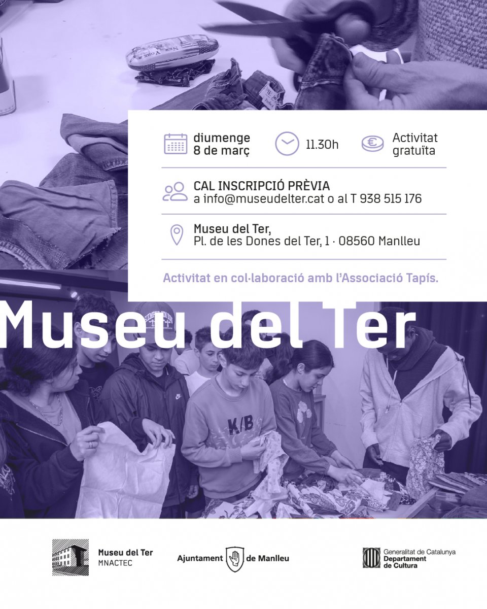 El taller tindrà lloc al Museu del Ter, a la plaça de les Dones del Ter, 1, a Manlleu, i es realitza amb la col·laboració de l’Associació Tapís.