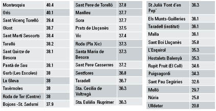 Pel que fa a les temperatures mínimes, detallen des del Meteocat, una de les més baixes de diumenge es va donar a Sant Pau de Segúries, amb 13,7, un municipi en què la màxima va superar els 32 graus. Els propers dies, però, les situen entre els 16 i 17 graus de mitjana als municipis d’Osona i el Ripollès, i als 21 als del Moianès.