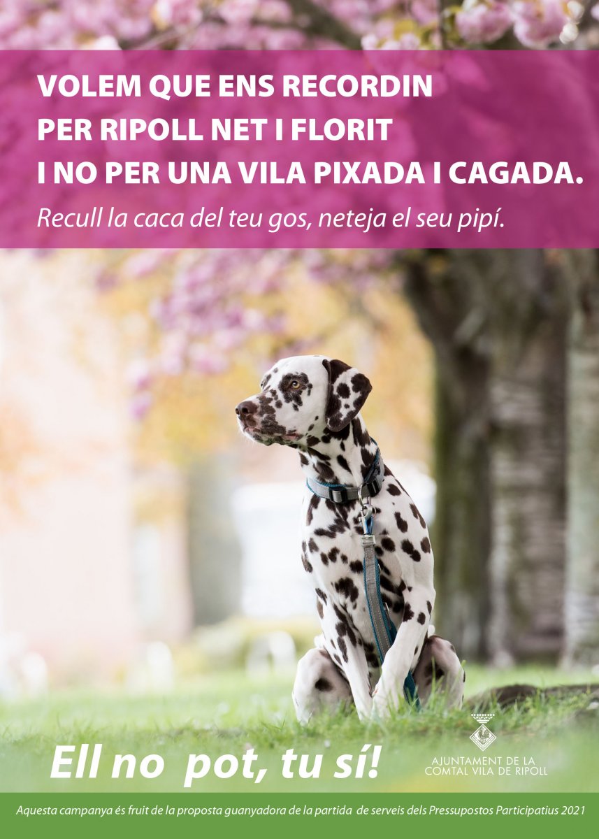 Amb el contundent lema ‘Volem que ens recordin per Ripoll net i florit i no per una vila pixada i cagada”, l’Ajuntament ha iniciat una campanya per intentar reduir els excrements d’animals de companyia a la via pública i conscienciar als seus propietaris de les responsabilitats que comporta tenir-ne cura.