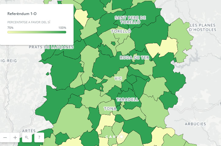 El ‘sí’ va aconseguir el entre el 95% i el 96% dels vots a Osona, el Ripollès i el Moianès. Però on va aconseguir el percentat més elevat? i el més baix?