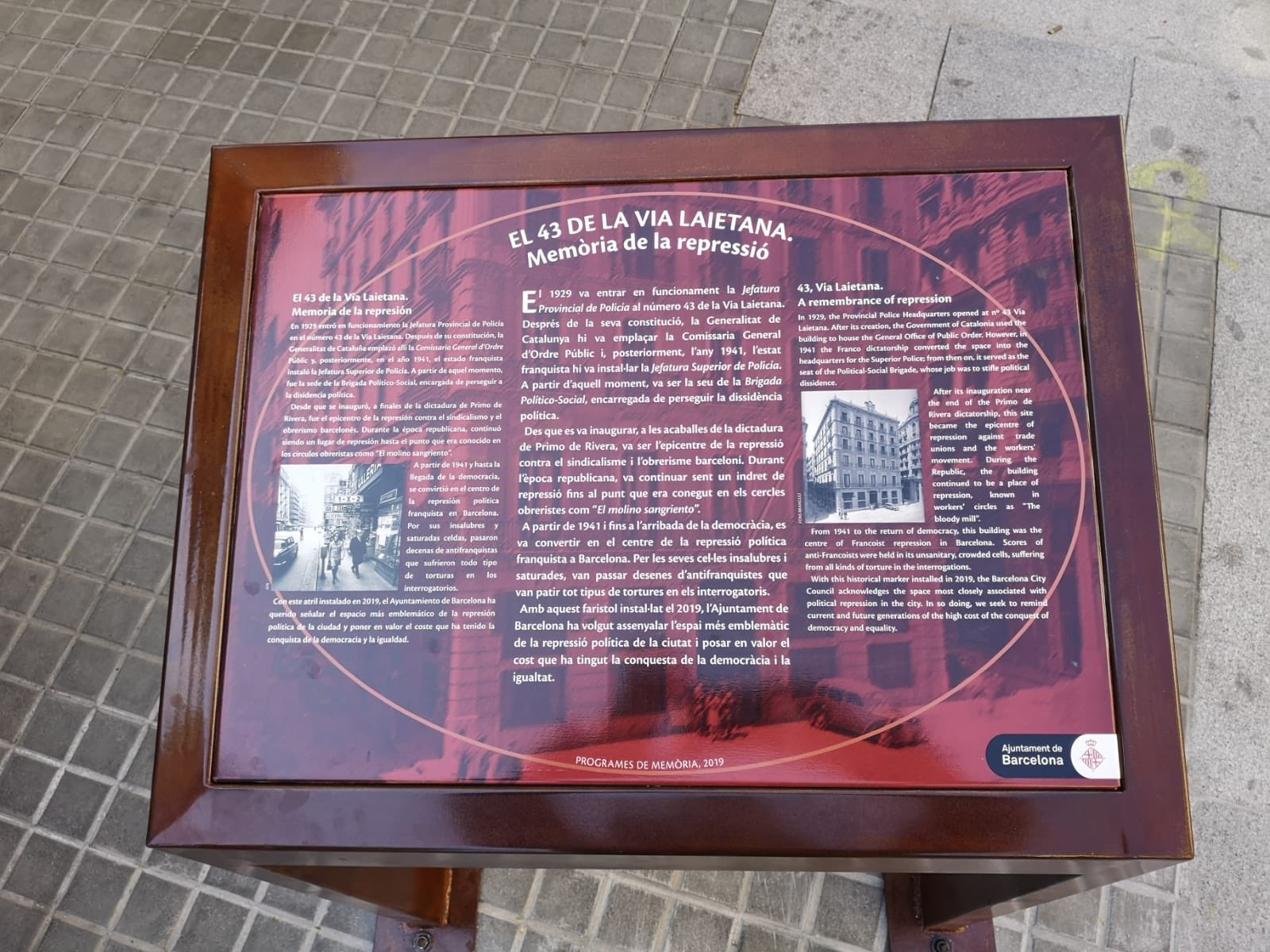 Durant el franquisme, la comissaria de la Policia Nacional de Via Laietana va ser escenari de repressió, tortura i violència contra els antifranquistes. Amb motiu de la polèmica que s’ha aixecat per la instal·lació d’una placa que recordar tota aquesta repressió que es va viure en aquesta comissaria, Francesc Codina, actual president del Patronat d’Estudis Osonencs, ha trencat el silenci i ha explicat la seva experiència amb un fil a twitter. La líder de Ciutadans Carina Mejías diu que la placa és una provocació i és ofensiva cap als agents de la Policia Nacional. Francesc Codina ha relatat aixó el que va viure als anys setanta: