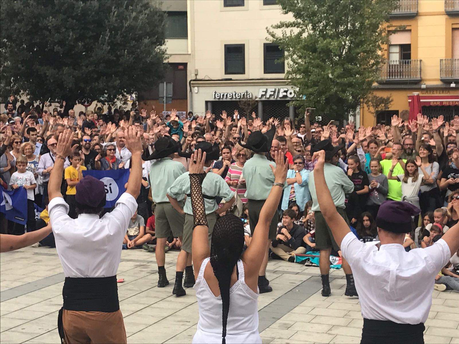 El ball es fa només per la festa major de Torelló però avui s’ha volgut mostrar el rebuig a la violència exercida contra el referèndum