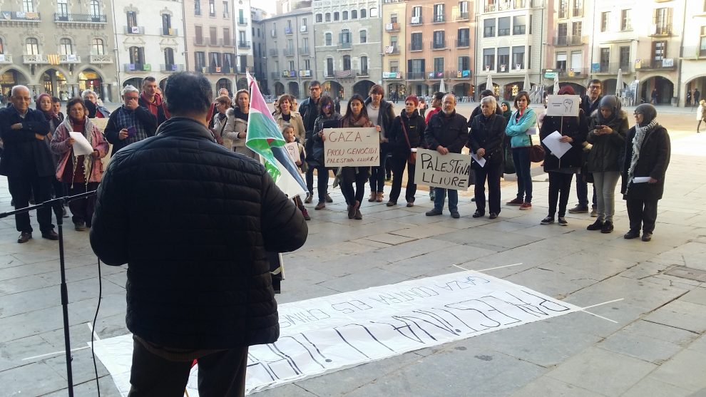 Desenes de persones s’han concentrat aquesta tarda a la Plaça Major de Vic en solidaritat amb el poble palestí, després de la mort de 17 persones el passat divendres en l’ofensiva de l’exèrcit israelià a la franja de Gaza. En la concentració, el portaveu de la comunitat islàmica de Vic, Jamel El Mezziani, ha llegit un manifest en el que demana a les institucions catalanes la desvinculació total amb l’estat d’Israel. També hi ha hagut lectura de poesia i la concentració ha acabat amb un minut de silenci en record a les víctimes.