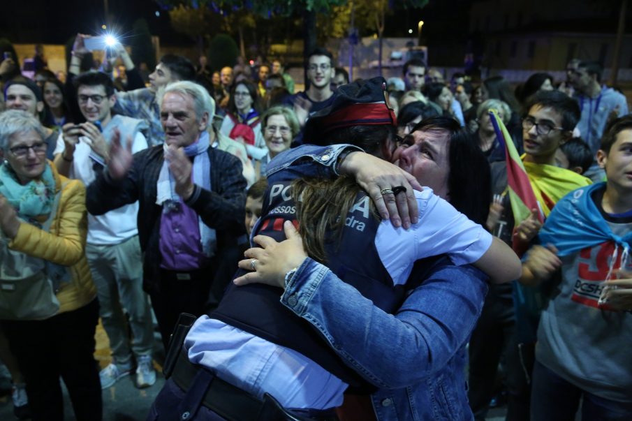 L’acte ha acabat amb el cant dels Segadors i amb abraçades dels ciutadans amb els Mossos, que s’han emocionat.