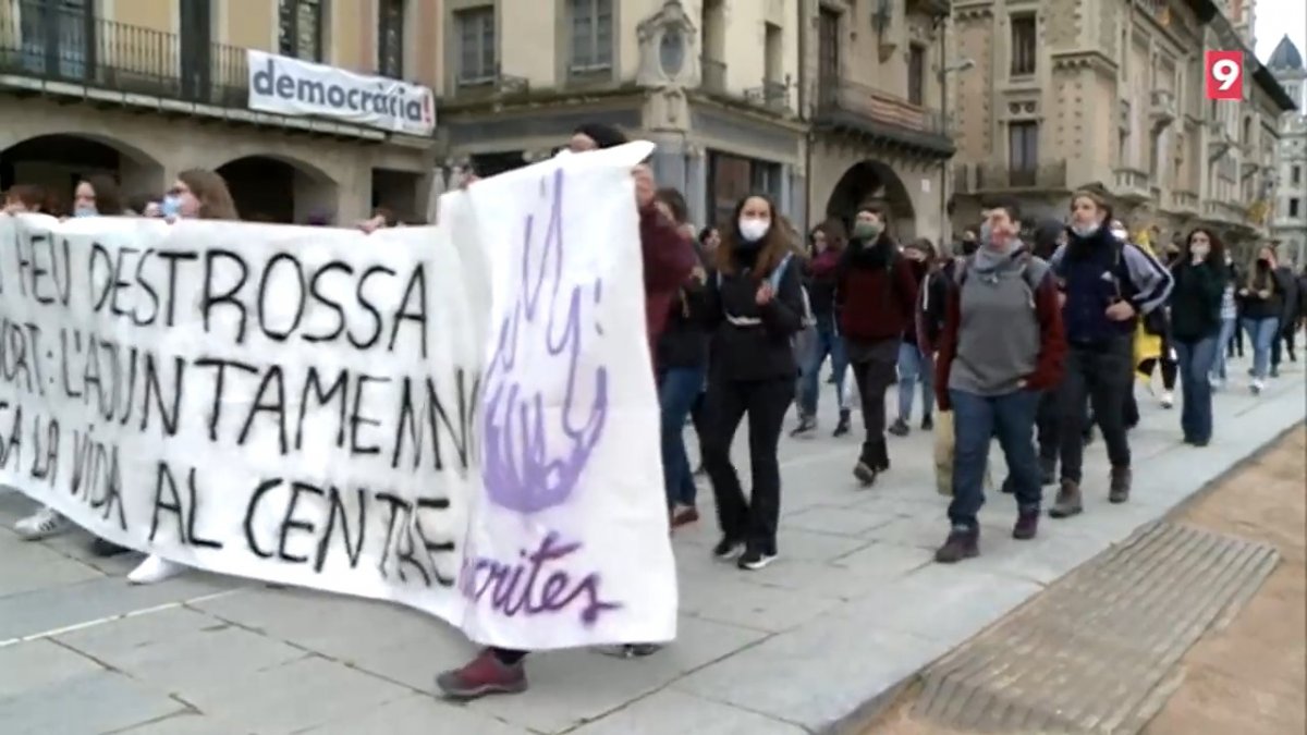 Un centenar de dones han interromput, aquest migdia, la lectura del manifest institucional; un acte que anualment convoca l’Ajuntament de Vic per commemorar el Dia de la Dona. Amb una pancarta on podia llegir-se ‘Ens heu destrossat l’hort: l’Ajuntament no posa la vida al centre’, les manifestants han denunciat la decisió, del consistori vigatà, de retirar els horts que membres del comitè de vaga feminista d’Osona i el Lluçanès van construir aquest diumenge a la plaça de la Noguera. Una acció que una trentena de dones van dur a terme “com a símbol de vida i de transformació feminista”.