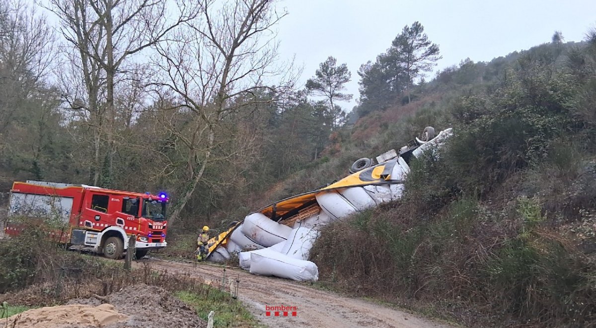 Un camió de serradures ha bolcat aquest dijous al migdia a l’Eix Transversal, en terme municipal de Sant Bartomeu del Grau. Segons fonts dels Bombers de la Generalitat, el vehicle s’ha precipitat per un terraplè d’uns 25 metres.