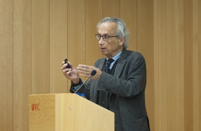 Els resultats positius que està donant la vacuna terapèutica contra la sida que desenvolupa Bonaventura Clotet, al capdavant dels investigadors d’IrsiCaixa, va centrar la conferència que el mateix Clotet va fer aquest dimarts a la Universitat de Vic. Es titulava “L’erradicació de la sida ara és possible”, i va reunir unes 300 persones a l’Aula Magna. Clotet dirigeix la Càtedra de la Sida i Malalties Relacionades de la UVic-UCC.
