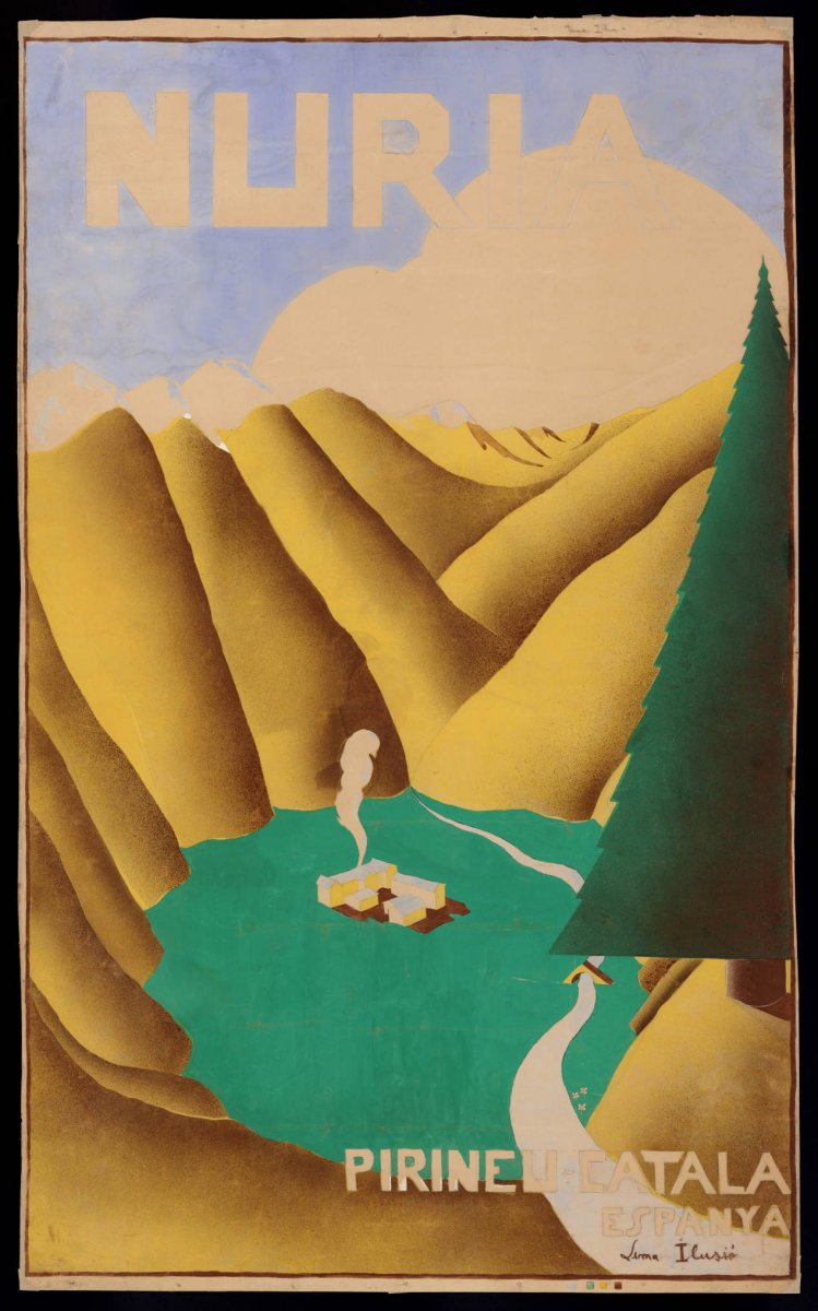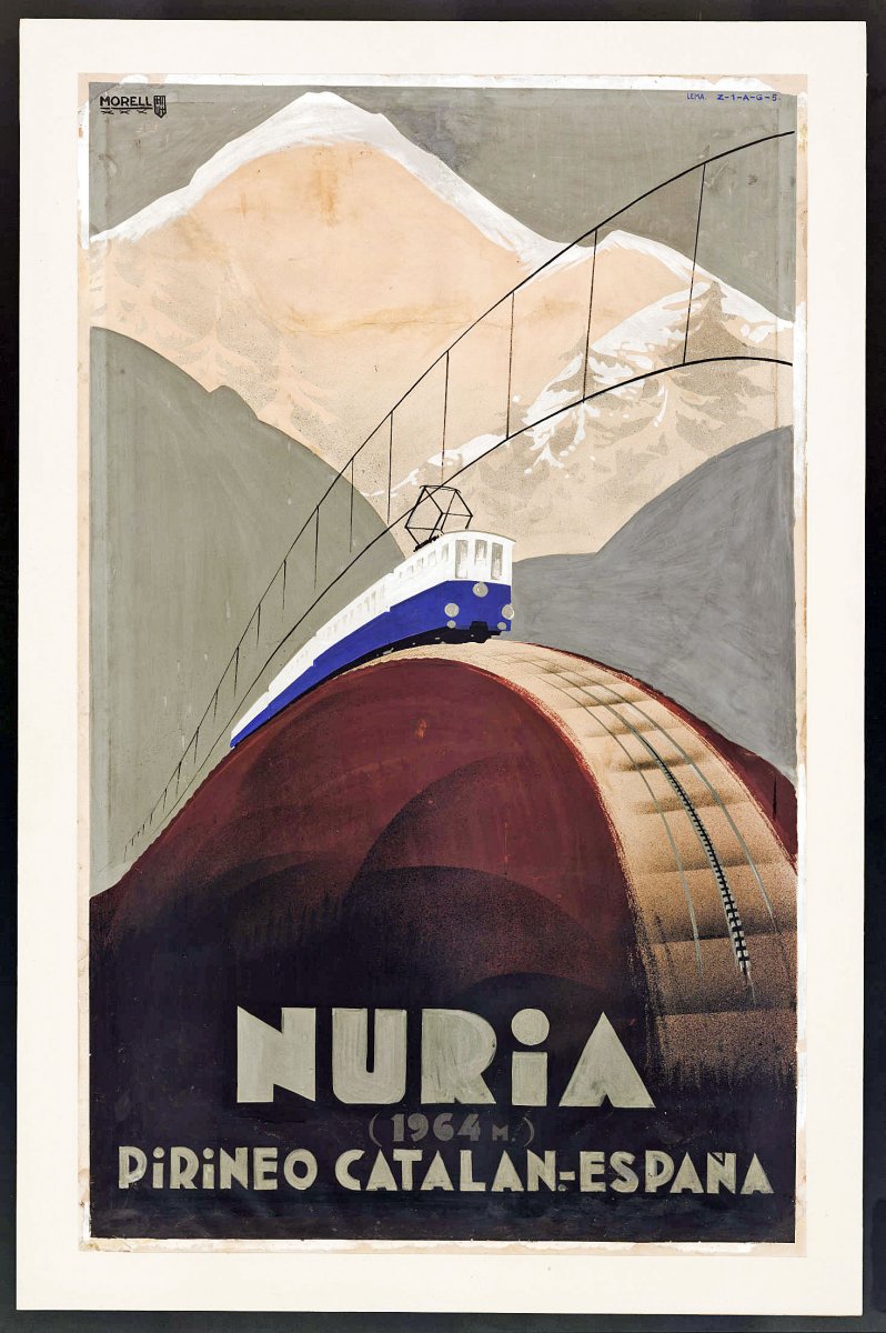 Els cartells, originals i de gran format, permeten entendre com es promocionava el cremallera de Núria en els seus inicis i com els recursos gràfics contribuïen a crear un imaginari turístic atractiu per al públic de l’època.