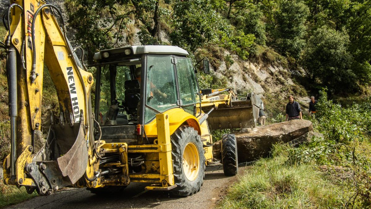 La carretera ha estat tallada fins que s’ha pogut retirar la pedra amb una màquina.