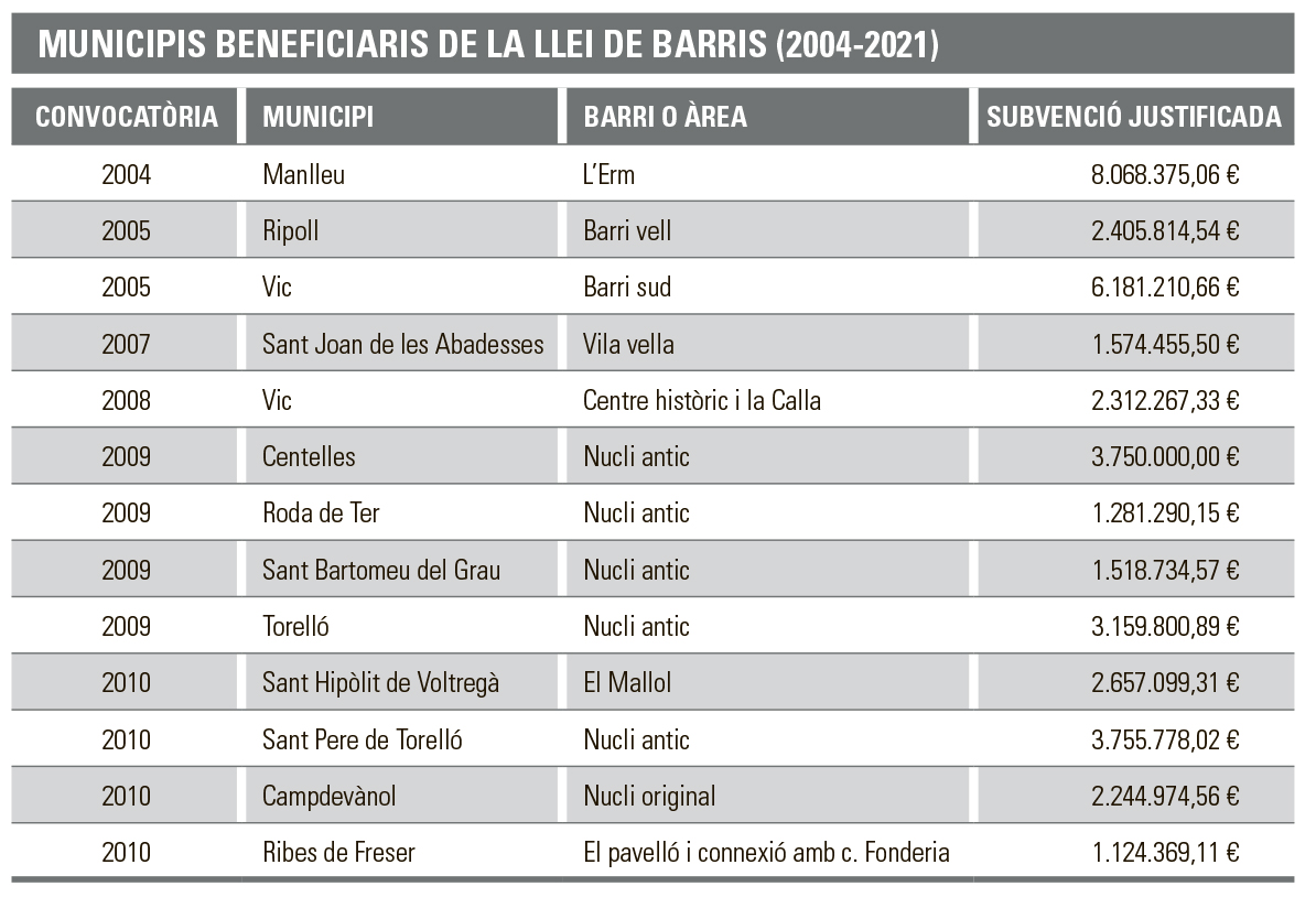 Des de la seva arrencada, el programa d’ajudes als barris ha deixat a Osona i el Ripollès uns 40 milions d’euros i els consistoris esperen continuar ampliant la xifra i ser un del centenar de municipis escollits aquesta vegada.