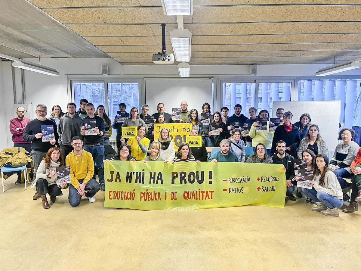 Una cinquantena de mestres i professors de centres públics d’Osona i el Lluçanès es van reunir dimarts per constituir-se com a assemblea docent i preparar accions per dimecres, quan hi ha prevista una vaga del sector. Els docents volen mostrar el seu malestar i denunciar que “la manca de recursos, les ràtios massa elevades i la gran diversitat present a les aules fan que un sol docent no pugui atendre tot l’alumnat com cal”.