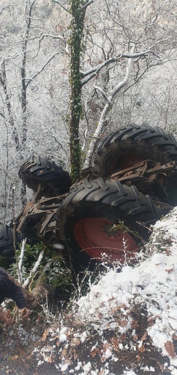 Un tractor que participava en les tasques de neteja de les carreteres escampant sal va bolcar a la carretera de Beget (GIV-5223), sense conseqüències per al conductor, segons expliquen diversos testimonis.