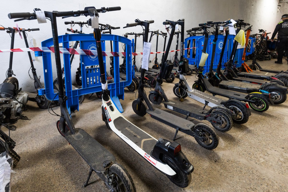En una nau municipal, hi ha una seixantena de patinets confiscats. Estan dividits per anys. Durant el 2025 se n’han comissat una quinzena, sobretot en la campanya intensa de principis d’octubre. Del 2024, n’hi ha una trentena d’immobilitzats i del 2023 i 2022, una vintena. Aquests últims segurament acabaran destruint-se perquè ningú els ha reclamat a dia d’avui.
