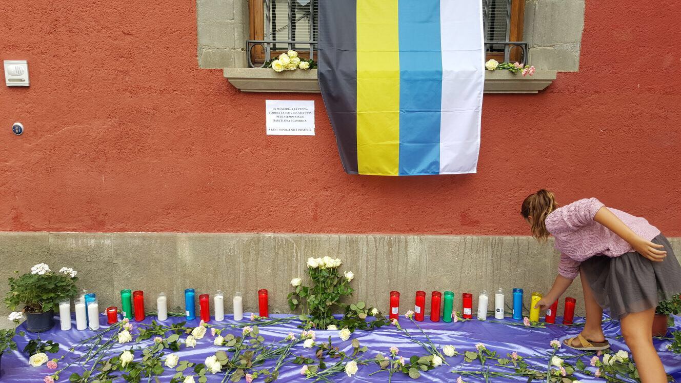 Flors i espelmes davant de l’Ajuntament de Sant Hipòlit reten un homenatge a la veïna del municipi, Pepita Codina, de 75 anys, que va morir aquest dijous en l’atac a la Rambla de Barcelona. És una de les tretze víctimes de l’atemptat -n’hi ha una catorzena a Cambrils- i ara els veïns del seu poble li han fet un petit homenatge. La seva filla és una de les persones que van resultar ferides al mateix punt, ara està fora de perill.