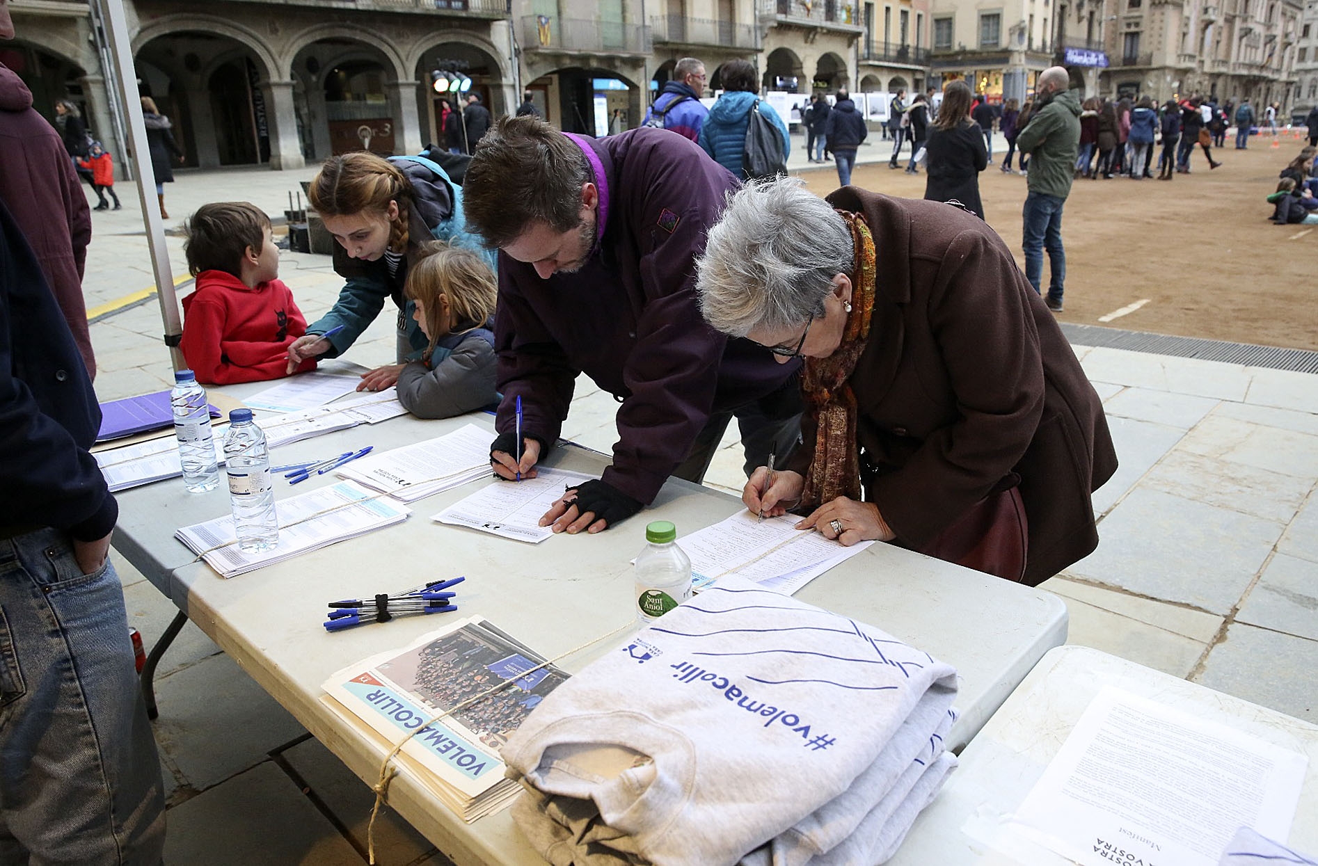 Prop de 800 persones van adherir-se a la campanya “Casa nostra, casa vostra” durant la jornada de recollida de signatures que va celebrar-se aquest dissabte a la plaça Major de Vic. L’acte, que va celebrar-se a les principals poblacions de Catalunya, va plantejar-se com una marató per obtenir el màxim de suports al manifest de la campanya, que treballa per l’acollida de refugiats.