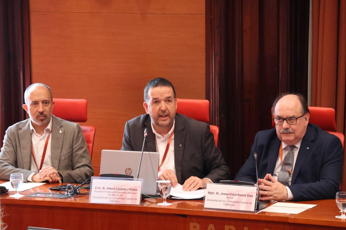 El rector de l’UVic-UCC, Josep Eladi Baños, i el president de la Fundació Universitària Balmes (FUBalmes), Albert Castells, van reclamar dimarts des del Parlament de Catalunya que la futura reforma de la Llei d’universitats catalanes tingui en compte la idiosincràcia de la UVic-UCC. Baños i Castells van comparèixer dimarts davant la Comissió de Recerca i Universitats per fer balanç de la feina feta per la UVic-UCC fins al moment i plantejar els objectius, els reptes i les línies estratègiques de futur de la institució.
