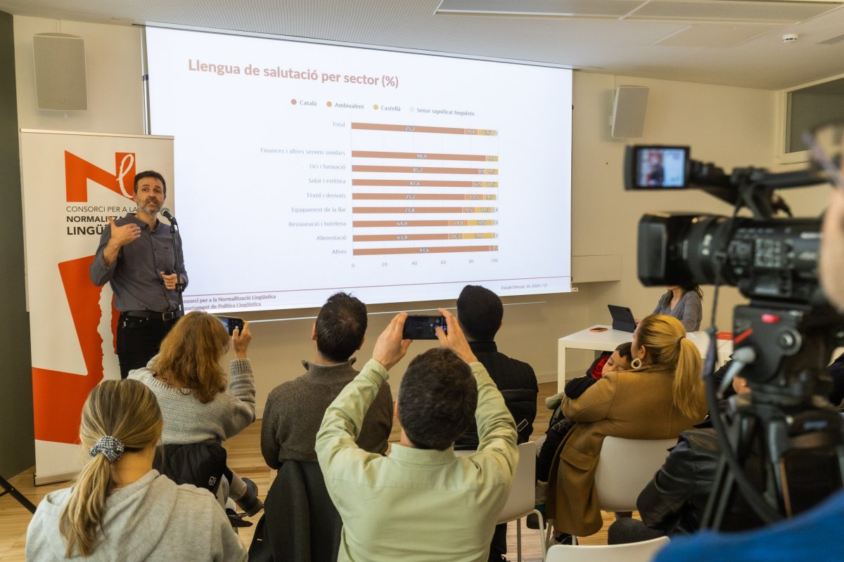 Segons aquest informe, un 75,7% dels comerciants (tres de cada quatre) enceta la conversa en català i un 86,8% (nou de cada deu) continua parlant l’idioma quan els clients s’hi dirigeixen. En canvi, un 12% continua en castellà malgrat que se’ls hagi iniciat la conversa en català. L’informe desgrana l’ús del català per sectors. El més baix és el de la restauració i l’hostaleria, on la llengua de salutació està al 64% i el de la disponibilitat lingüística, al 80%.