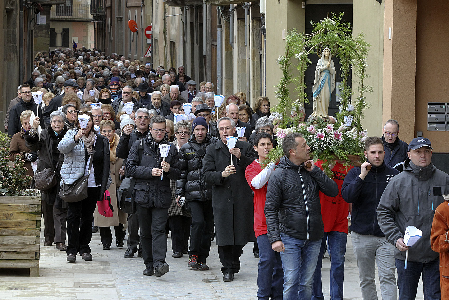 Ple absolut a la catedral, en la missa que aquest diumenge obria els 50 anys de l’Hospitalitat de Lourdes de Vic. La cerimònia la va oficiar el Bisbe Romà Casanova i hi van participar unes 800 persones, que a la sortida encenien aquestes torxes per commemorar l’efemèride del cinquantè aniversari. Acte seguit, i darrere la imatge de la Mare de Déu, més de 600 van anar caminant fins al recinte firal del Sucre, on s’hi feia el dinar de germanor. La festa, segons l’hospitalitat, va ser tot un èxit, amb persones d’Osona, però també centenars de voluntaris de les comarques de la diòcesi de Vic, com el Bages o el Solsonès.