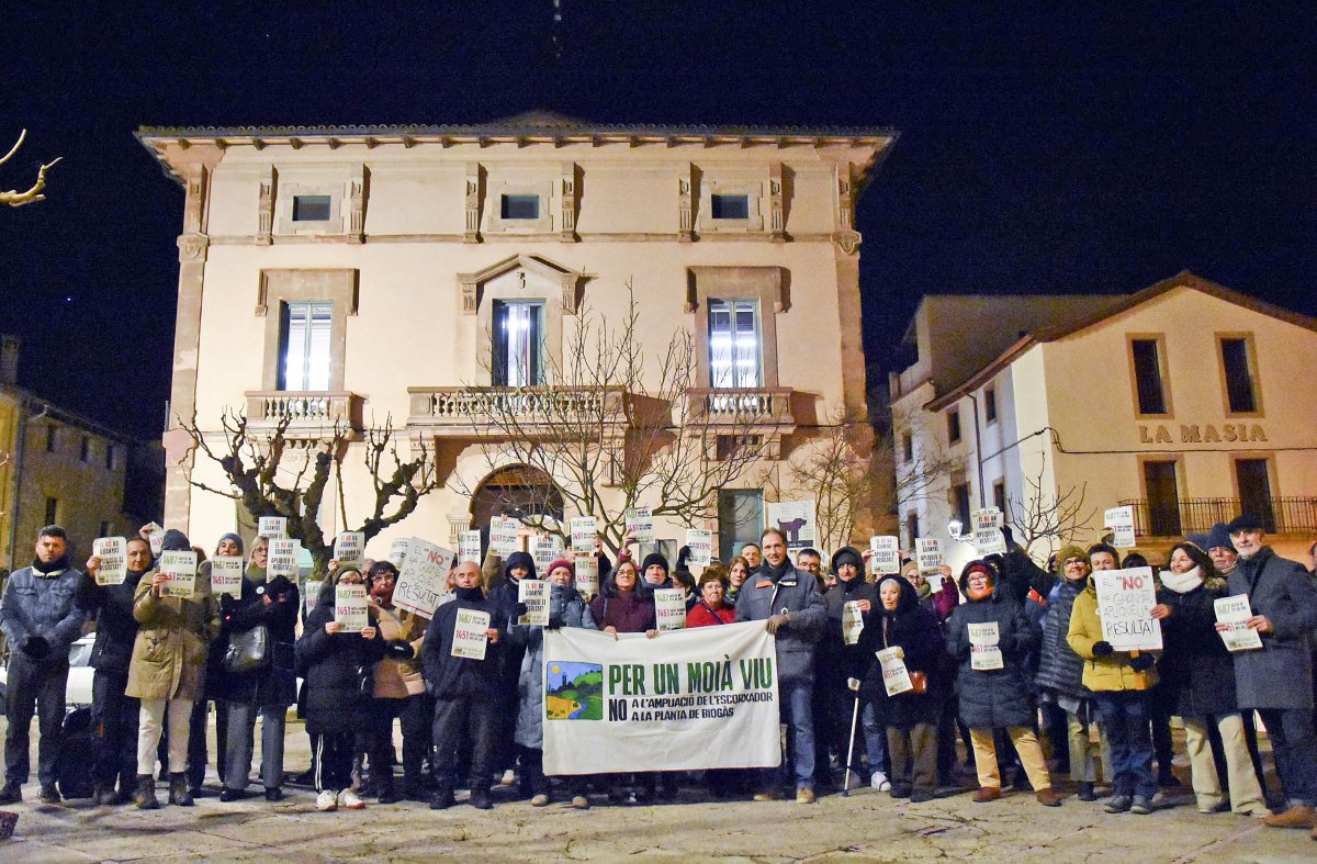 A fora, hi havia una concentració convocada pel col·lectiu Per un Moià Viu, que va reunir una setantena de persones.