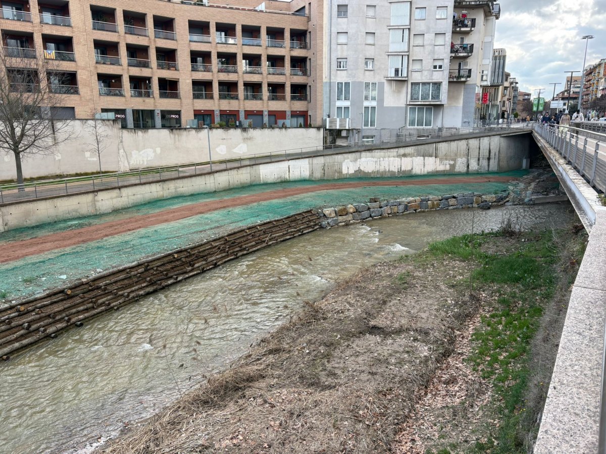Més d’un s’ha sorprès avui en veure com uns operaris ruixaven amb un líquid verd els marges del riu Méder a Vic. Ha quedat tot d’aquest color, a excepció d’un estret camí.