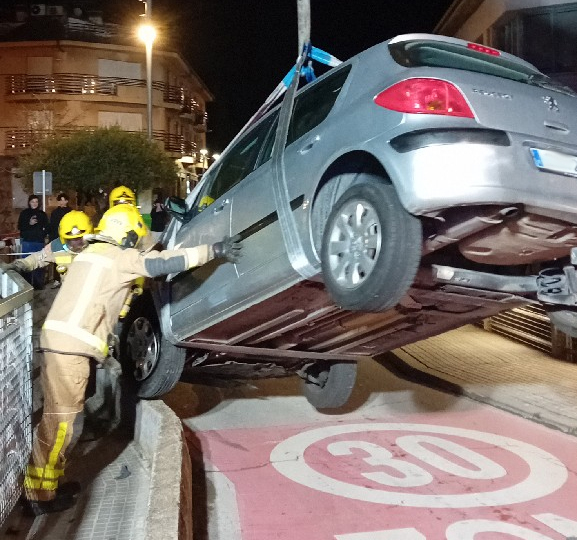 Amb l’ajuda de la grua de l’autoescala dels bombers van poder retirar el vehicle.