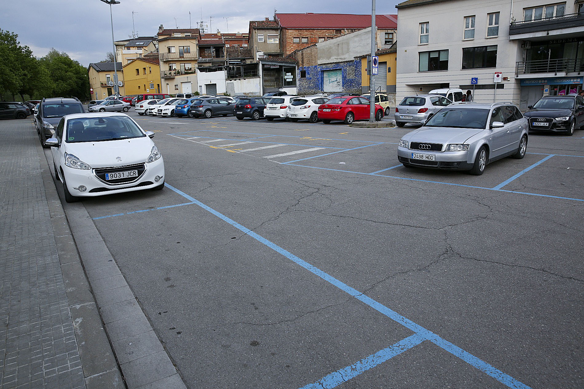 Fa uns mesos una part de les places d’aquest pàrquing, una vintena, ja es van fer de zona blava. Va ser quan es va treure la zona d’estacionament limitat de l’aparcament de l’avinguda Pompeu Fabra, davant de l’escola Fortià Solà, que inicialment eren de zona blava.