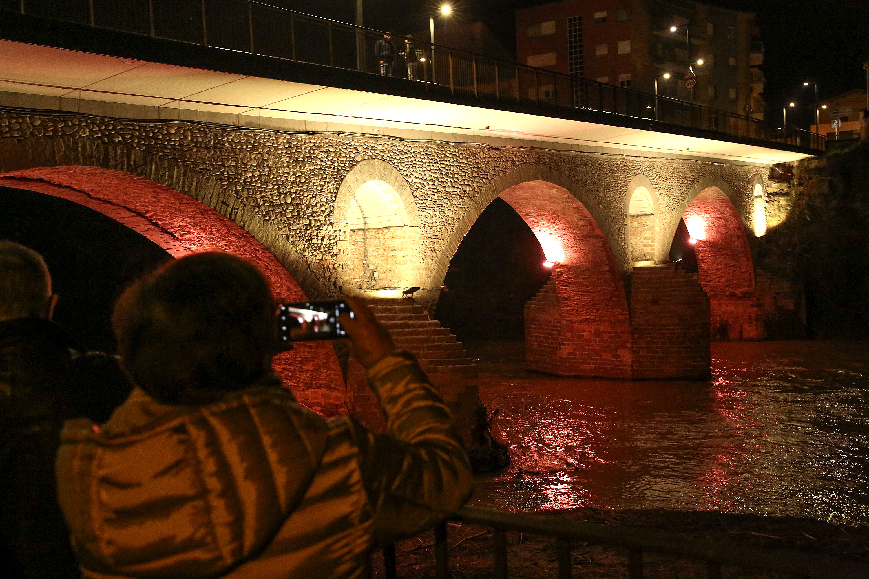Un audiovisual projectat sobre el pont al mateix temps que un joc de llums resseguia la narració del vídeo servia per donar la benvinguda a la remodelació del pont de Can Molas de Manlleu, divendres al vespre. A la projecció s’hi explicava la història del pont i de com han evolucionat les comunicacions entre Vic i Manlleu al llarg dels segles. El document es remuntava a l’any 1396, quan es va decidir fer un pont per travessar el Ter. No està ben documentat, deia l’àudio, si van trigar 30 anys o 60 a fer-lo: “Fossin 30 o fossin 60 són els anys que van estar donant la volta per anar a Vic. I nosaltres que ens queixàvem”, comentava irònicament la narració davant les queixes que hi ha hagut durant el mig any que el pont ha estat tallat. A l’acte hi van assistir unes 200 persones, concentrades al passeig del Ter, i va acabar amb el joc de llums sobre el pont al ritme de la música dels manlleuencs Pep Poblet, Guillem Roma, Paula Valls i Roger Usart.