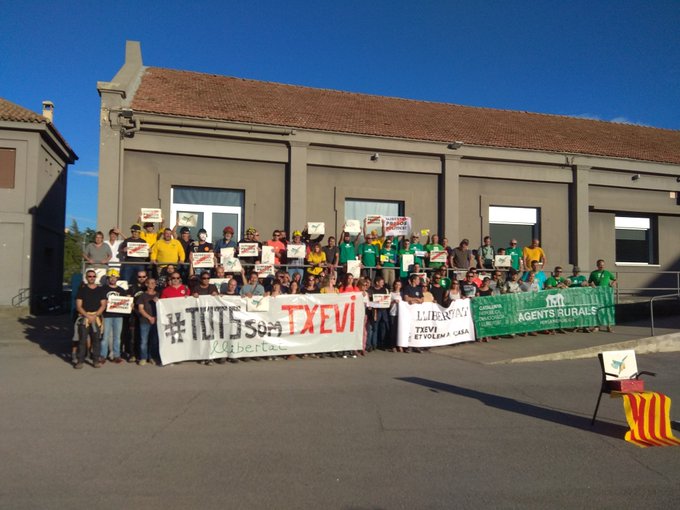 Una setantena de persones vinculades laboralment amb Txevi Buigas, el folguerolenc empresonat en l’operació Judes, s’han concentrat aquesta tarda a El Sucre de Vic. En aquest punt és a on els Agents Rurals hi tenen la seu comarcal. Al darrera de diverses pancartes de suport al seu company de feina s’hi han pogut veure membres dels Agents Rurals, dels Bombers, de les Agrupacions de Defensa Forestal (ADF) i dels guardes dels parcs naturals de la Diputació, com l’Espai Guilleries-Savassona, a on Buigas treballava des de fa més de vint anys. En l’acte també s’ha destacat la importància del Blauet, l’ocell preferit de Txevi Buigas i que es vol convertir en el símbol del seu cas.