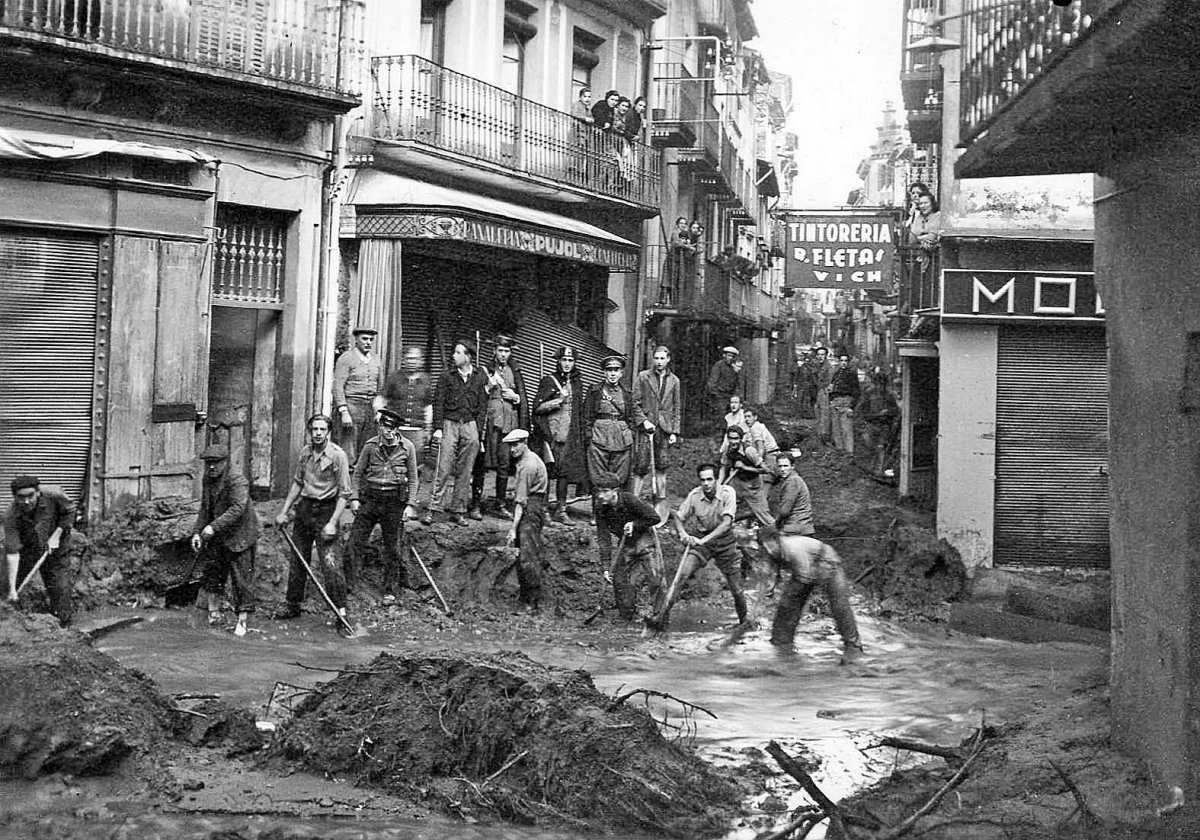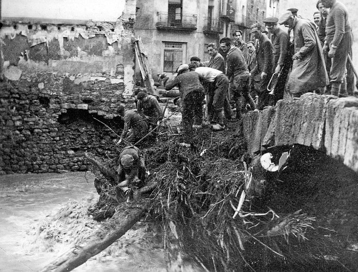 Durant l’acte de commemoració dels 80 anys de l’aiguat, dissabte a Camprodon, tant la regidora de Cultura, Maria Àngels Reixach, com Lluís Bassaganya, comissari de l’exposició fotogràfica que acull Cal Marquès, i Roser Vilardell, directora del Museu Etnogràfic de Ripoll, també van fer referència al context: els rius es van emportar ponts i edificis que havien sobreviscut a la guerra, però la catàstrofe i la necessitat d’ajudar-se va servir per acostar famílies de dretes i esquerres que fins llavors continuaven barallades. Documentar i difondre el que van viure és fer present l’esforç col·lectiu dels qui van passar-se hores traient fang, reconstruint ponts, cosint roba o fins i tot pescant esclops a cop de canya des d’un balcó del carrer València de Camprodon.
