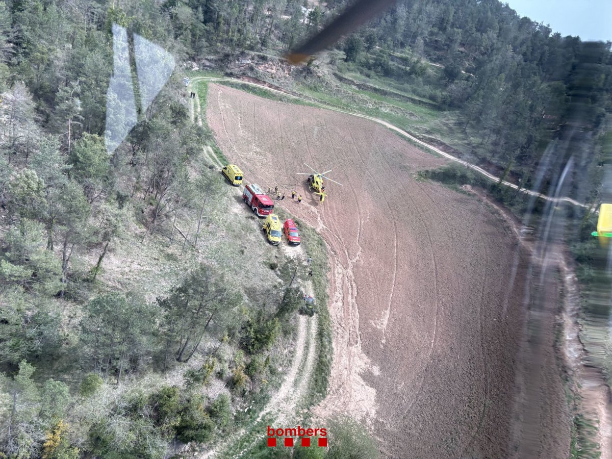 Els bombers han hagut de treure el ciclista, que ha resultat ferit, amb llitera i helicòpter per portar-lo a un camp proper on l’esperava el SEM.