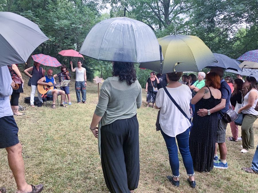 En l’acte, acompanyat de pluja, l’Escola Municipal de Música de Torelló hi va interpretar dues peces.