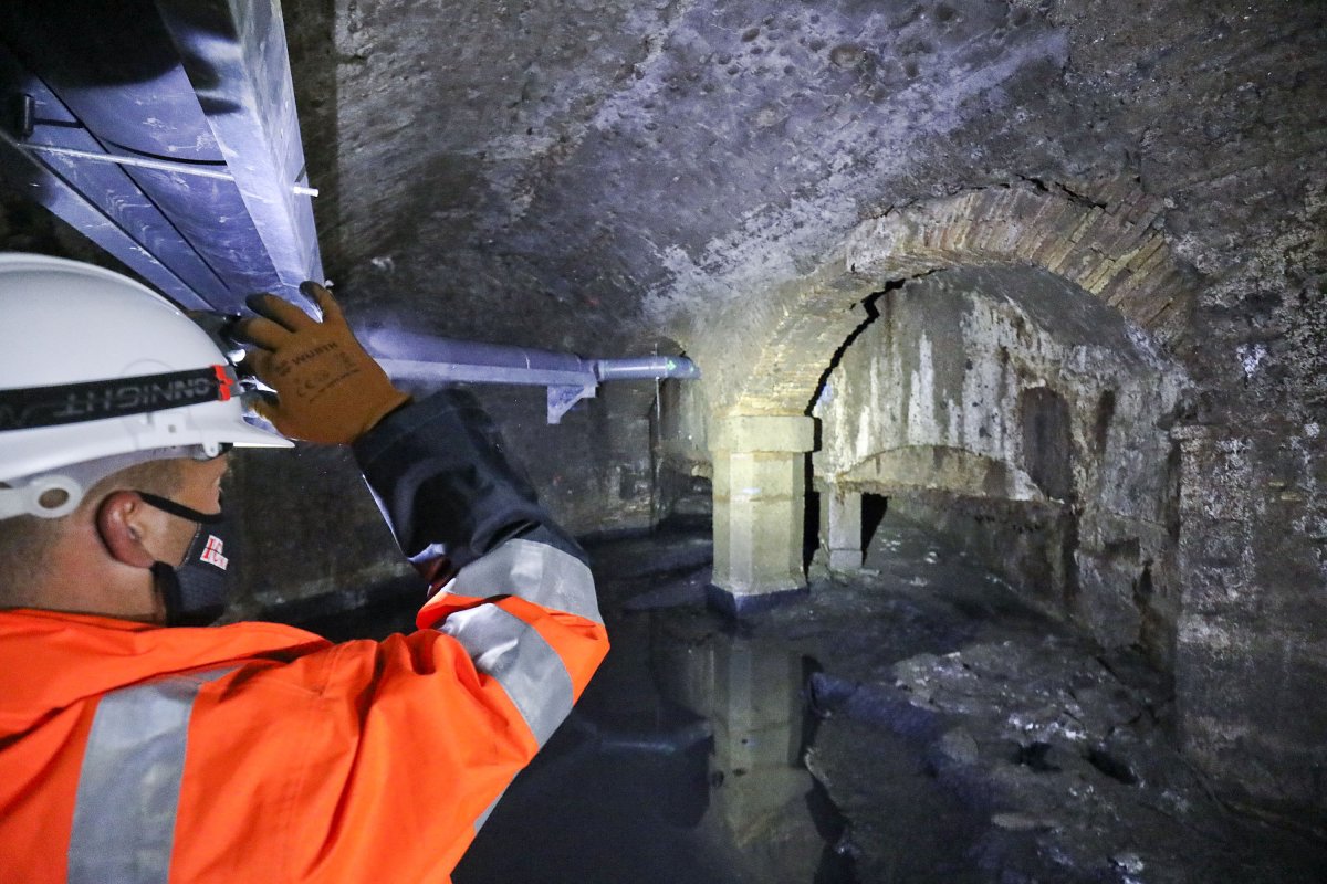 Durant tot aquest temps la fuita ha persistit. O el que és el mateix: el CERM l’ha anat recollint anualment als seus estudis, fins que l’Ajuntament ha decidit prendre la iniciativa i invertir 350.000 euros al passeig del Ter per posar al dia el clavegueram i canalitzar cap a la depuradora aquestes aigües brutes que abans acabaven directament al riu. La curiositat és que per fer-ho possible s’utilitzarà una infraestructura del segle XIX, l’antiga xarxa de canals industrials. Un llegat que ara reposa a cinc metres sota terra, cobert per l’asfalt del passeig del Ter, però que al seu dia era indispensable per als telers i les fàbriques que constituïen la façana fluvial de Manlleu. EL 9 NOU ha tingut l’oportunitat de resseguir en primera persona una petita part de les galeries. Avui, amb les turbines aturades, l’aigua no hi circula a raig, però continua havent-n’hi, a més a més d’una generosa capa de fang i brossa diversa, des d’ampolles o pneumàtics fins a sabates que l’amo devia perdre qui sap on i qui sap quan. Alçada, abans de la volta del sostre, la canonada que ja recull les aigües brutes d’aquests 120 habitatges de carrers com l’Enric Delaris o el Sant Ferran.
