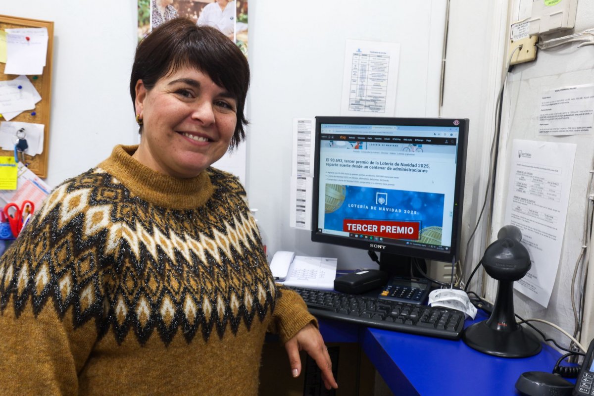 Així ho vivia Yaiza Olmo, que a mig matí d’aquest dilluns rebia amb sorpresa la notícia que el número 90693, del qual havia venut una sèrie, era l’afortunat amb el tercer premi del sorteig. Una sèrie, 10 números, i, per tant, mig milió d’euros que havia repartit des del seu establiment a l’avinguda del Comte Guifré.