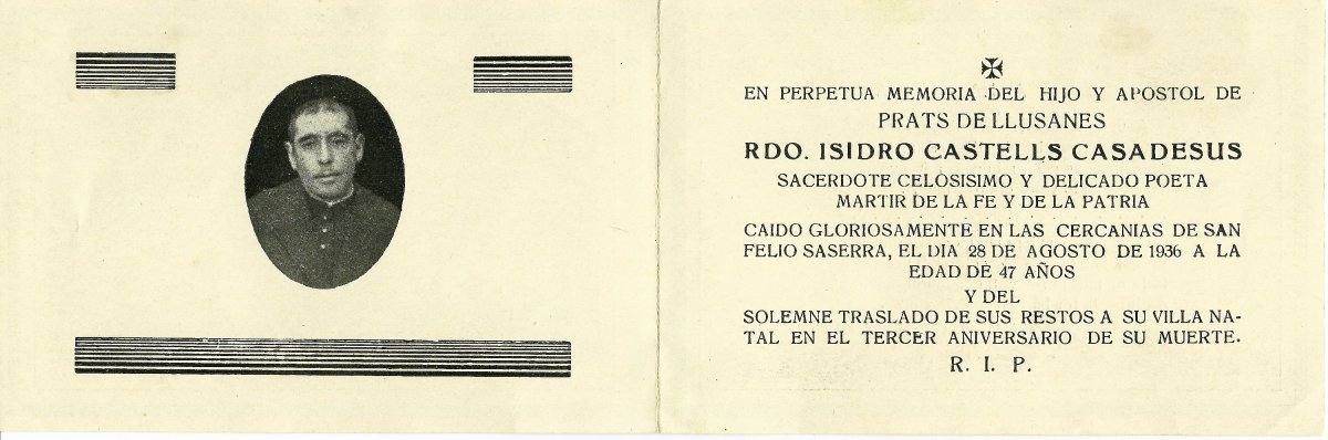 La violència revolucionària que va tenir lloc al llarg de les primeres setmanes de la Guerra Civil a Prats de Lluçanès es va cobrar la vida d’un únic pradenc, mossèn Isidre Castells. El seu cos es va trobar el 28 d’agost del 1936 a l’anomenat Pla de la Llana, en terme de Sant Feliu Sasserra, a tocar de la carretera que uneix aquesta localitat amb Prats de Lluçanès. Després de 85 anys, aquesta mort continua sent un dels episodis més foscos d’aquest període ja que la documentació consultada no aclareix l’autoria del crim ni tampoc si hi havia motivacions personals entremig. L’assassinat va suposar un cop fort per a la població, on sembla que hi havia un acord tàcit de fer la revolució sense vessar sang segons els testimonis orals i documentals que ens han arribat.
