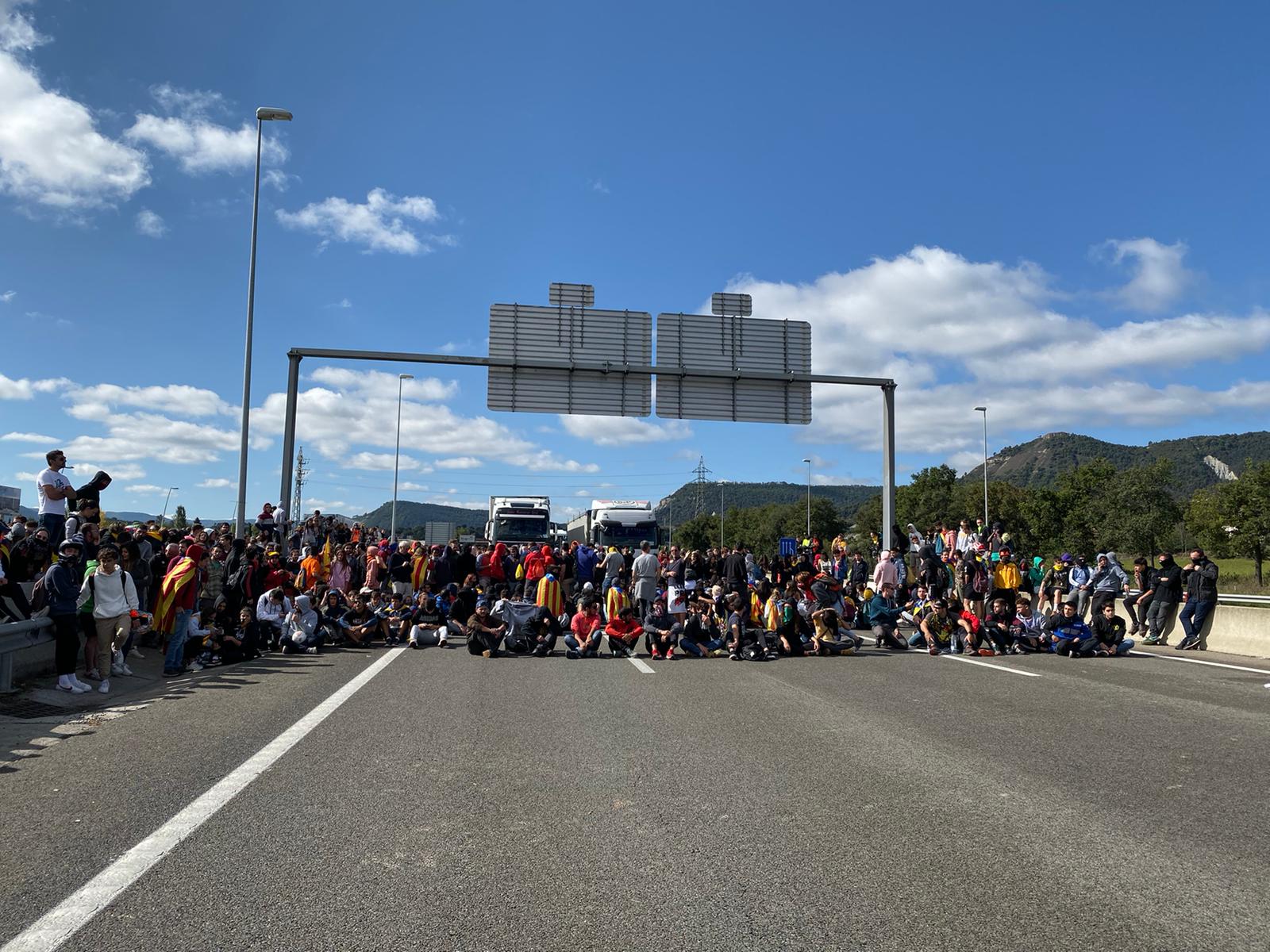 Agents de la Brigada Mòbil (BRIMO) dels Mossos han demanat als manifestants que tallen la C-17 i la C-25 que desallotgin la carretera. Ara mateix estarien en fase de mediació, però els concentrats no tenen intenció de marxar. La policia, per la seva banda, està a punt per si cal intervenir.