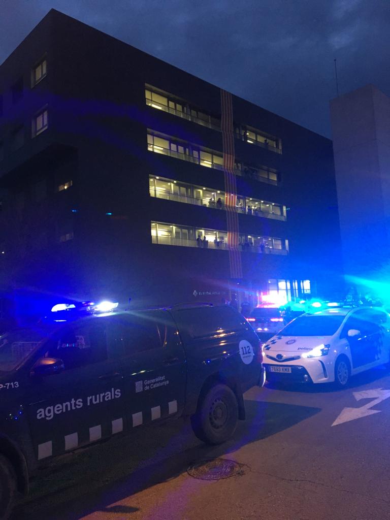 Una corrua de vehicles de cossos de seguretat i emergències es van aplegar ahir al vespre davant la residència El Nadal de Vic i els habitatges amb serveis per a la gent per donar suport a les persones que hi viuen i el personal que hi treballa.