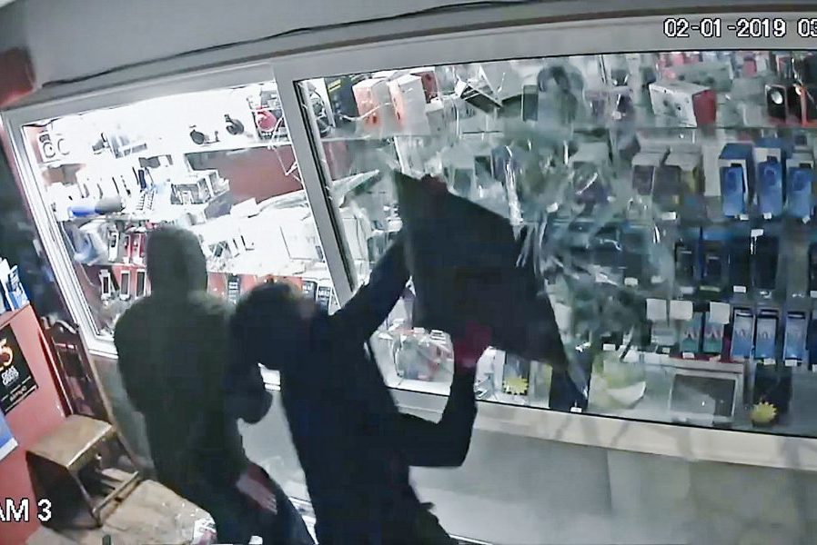 Podria semblar una pel·lícula de lladres i policies però és l’enregistrament que van fer la matinada del 2 de gener les càmeres de videovigilància de la botiga de telèfons Basra Mobile, de la rambla Hospital de Vic. A les 3 en punt de la matinada tres siluetes, tres homes encaputxats i amb guants, s’acosten a la reixa de l’establiment. Entre tots l’estiren i la dobleguen fins que s’obre i els permet accedir als escassos 40 centímetres que hi ha fins a les dues portes de vidre. No les poden obrir.